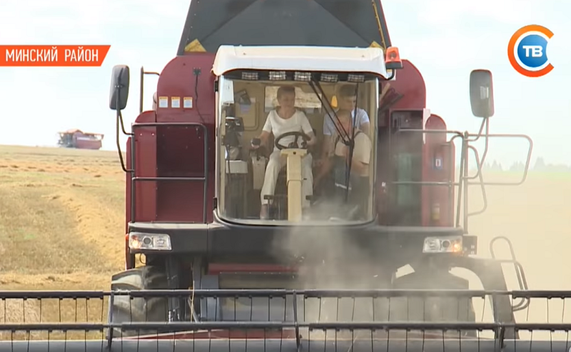 Несколькими минутами позже комбайн проехал прямо за спиной у главы государства, заставив того прервать интервью.