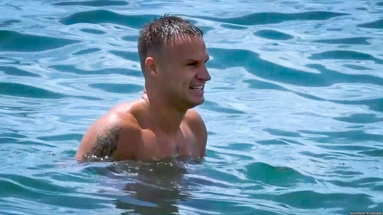 Журналисты Крым.Реалии заметили экс-футболиста сборной Украины и донецкого «Шахтера» Вячеслава Шевчука на пляже в Ялте.