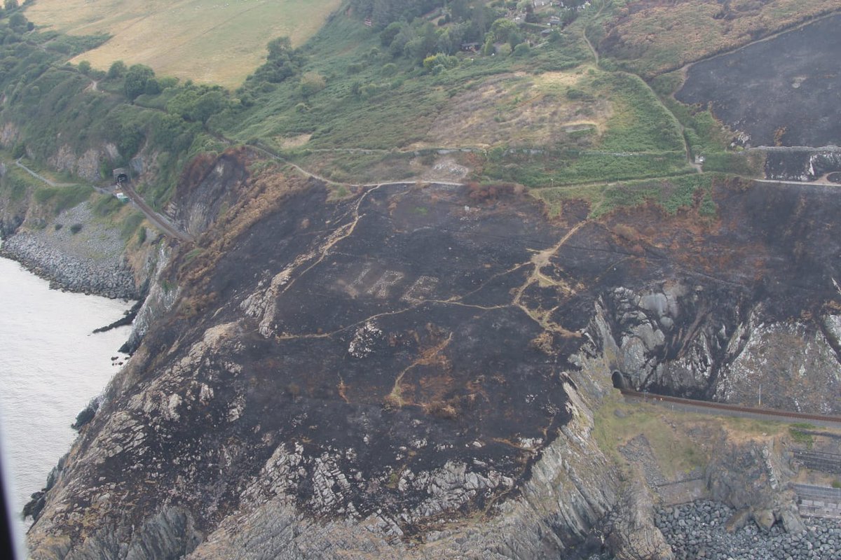 A Garda Air Support Unit crew spotted that the fire on Bray Head has revealed an “EIRE” sign dating from the Second World War.