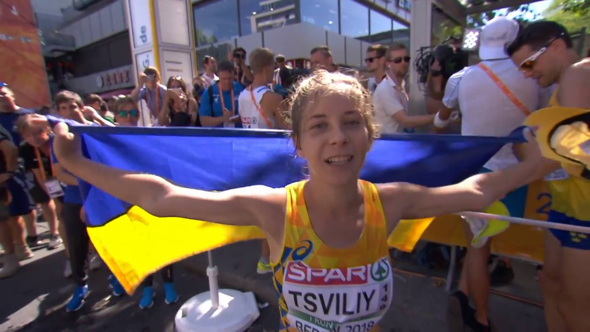 Вслед за Марьяном Закальницким, который стал чемпионом Европы по спортивной ходьбе на дистанции 50 километров, Украина получила второго медалиста. Алина Цвилий финишировала второй и выиграла серебро.