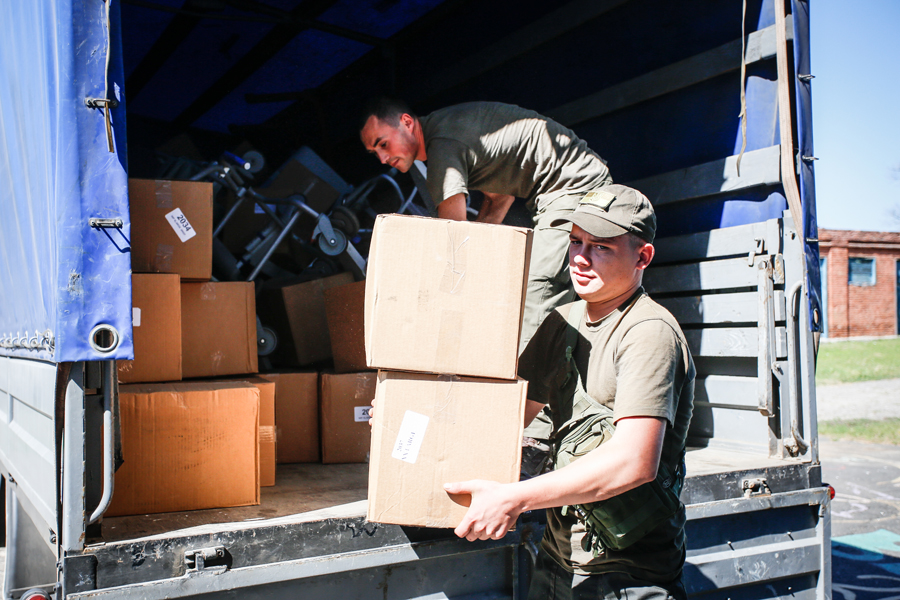 «Вантаж ми доставили у 24 школу. У вантажі – шкільні парти, стільці, столи, а також медичне обладнання: інвалідні візки, милиці тощо. Це все для людей, які мають у цьому потребу. Всього вантажу 3,5 тонни. Це не останній вантаж, який ми доставили у Попаснянський район та інші райони прифронтової зони. Національна гвардія перевозить вантаж з місця передачі до отримувача, зберігає і охороняє його», - розповів заступник командира роти по роботі з особовим складом військової частини 3066 капітан Віталій Микитюк.