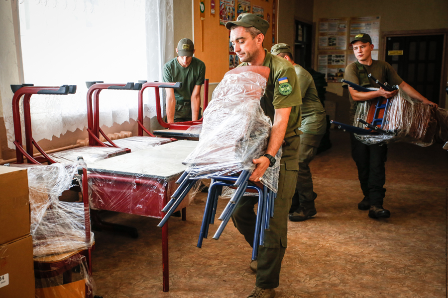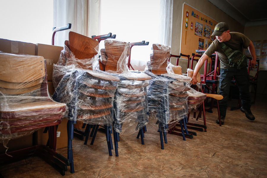 «Ми поставимо ці столи та стільці першокласникам, - пояснила директор школи Наталя Ксенофонтова. - На День знань вони сидітимуть вже за новими меблями. Цього року «першачків» у нас буде понад тридцять. Загалом в школі навчатимуться більше ніж 250 учнів. У 2015 році, після обстрілів, до нас ходило тільки півсотні дітей. Тут не було жодного цілого вікна. Зараз у нас спокійно, учні повертаються до нашої школи».