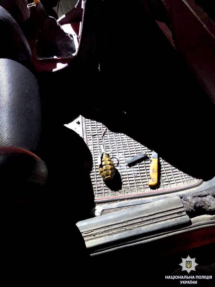 При осмотре салона автомобиля работники батальона «Харьков» совместно со следственно-оперативной группой Чугуевского ОП обнаружили и изъяли гранату «Ф-1» с запалом.