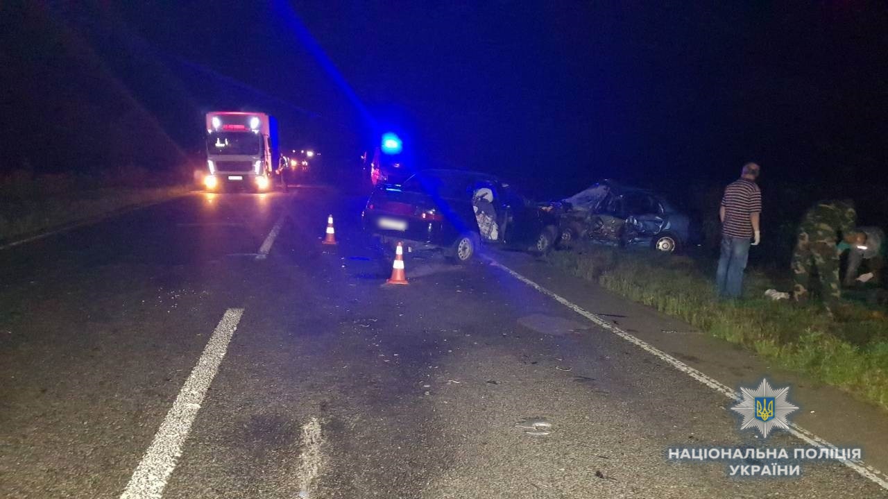 Авария произошла около семи часов вечера 71-м км автодороги "Борисполь - Днепр". По предварительной информации, 56-летний водитель автомобиля Dacia Logan, ехавший в сторону Днепра, при маневре обгона выехал на встречную полосу, где допустил столкновение с автомобилем Daewoo Lanos.