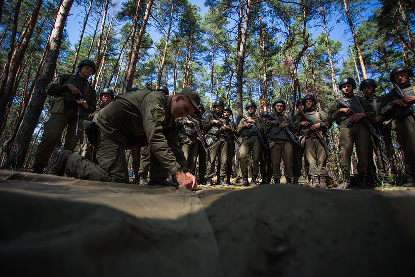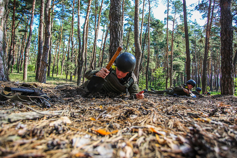 На заняттях з тактичної підготовки молоді гвардійці навчаються обладнувати позиції для ведення стрільби та способи укриття в різних місцевостях.
