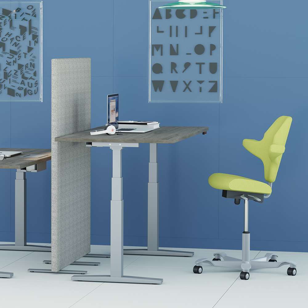 Данный экземпляр имеет электрическую регулировку высоты и может поднимать столешницу до 1,27 метра. Сама столешница, по выбору заказчика, может иметь ширину от 1,1 до 1,8 метра. Стандартный материал, из которого она сделана, 18-милиметровая ДСП Egger. Но можно выбрать и другой материал, подробности – на feshmebel.com.ua.