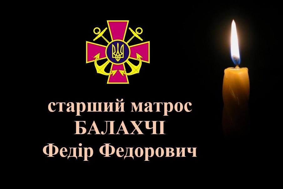 У районі виконання бойових завдань із захисту незалежності і територіальної цілісності України на території Донецької і Луганської областей, загинув наш бойовий побратим - морський піхотинець старший матрос БАЛАХЧІ Федір Федорович, віддавши своє життя за рідну Батьківщину.