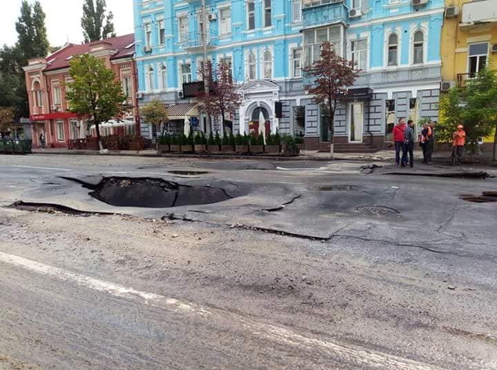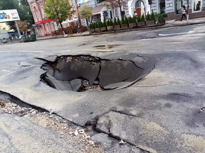 Киев, Жилянская-Антоновича, возле мегамаркета, смыло асфальт как раз укравтодор рядом)))