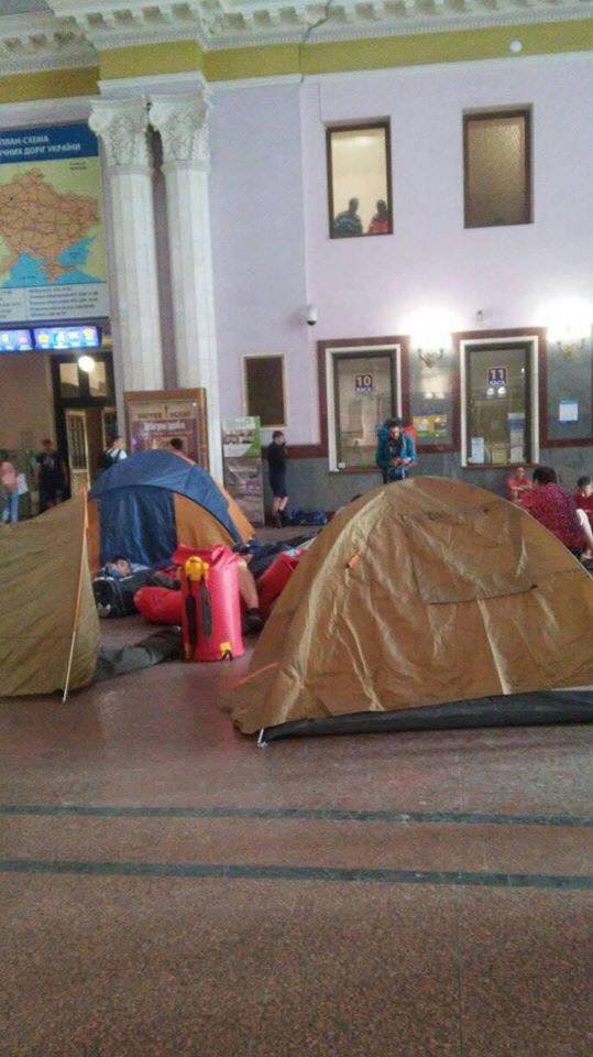 Пассажиры из Ивано-Франковска были вынуждены ночевать в палатке на вокзале во Львове из-за скандала с "Укрзалізницей".