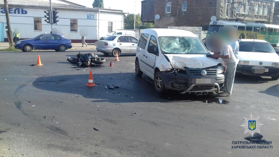 Участниками происшествия стали автомобиль "Volkswagen Caddy" и мотоцикл "Kawasaki".