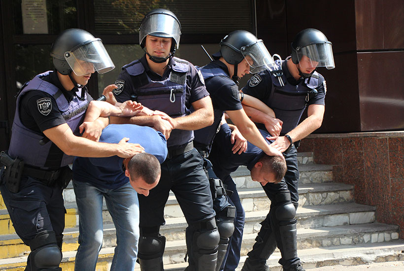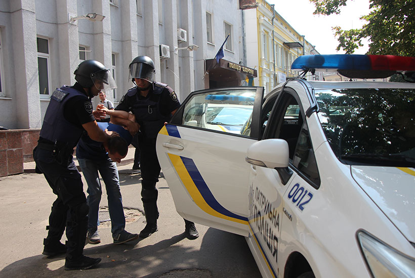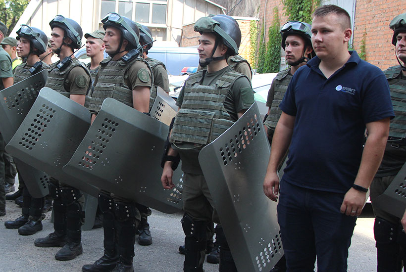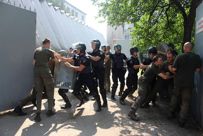 «Сьогодні ми тренуємось в спільних діях гвардійців та поліцейських при провокаційній поведінці підсудного та інших учасників судового процесу. Це обумовлено збільшенням резонансних судових процесів», – зазначає підполковник Олександр Скрипник.