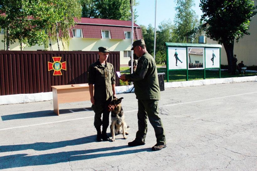Награды получили: старший солдат Игорь Стиплин - нагрудный знак «За доблестную службу», а его немецкая овчарка Аджи - медаль для служебных собак «За преданную службу» III степени.