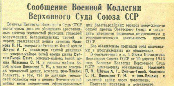 Напомним, в годы Второй мировой войны Шкуро вместе с бывшим донским атаманом Красновым принял сторону Германии.