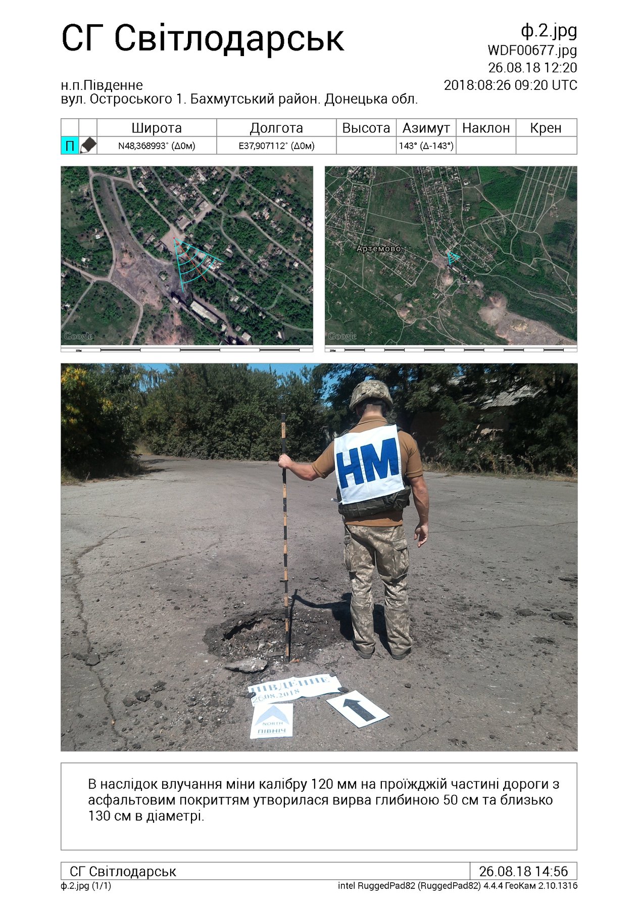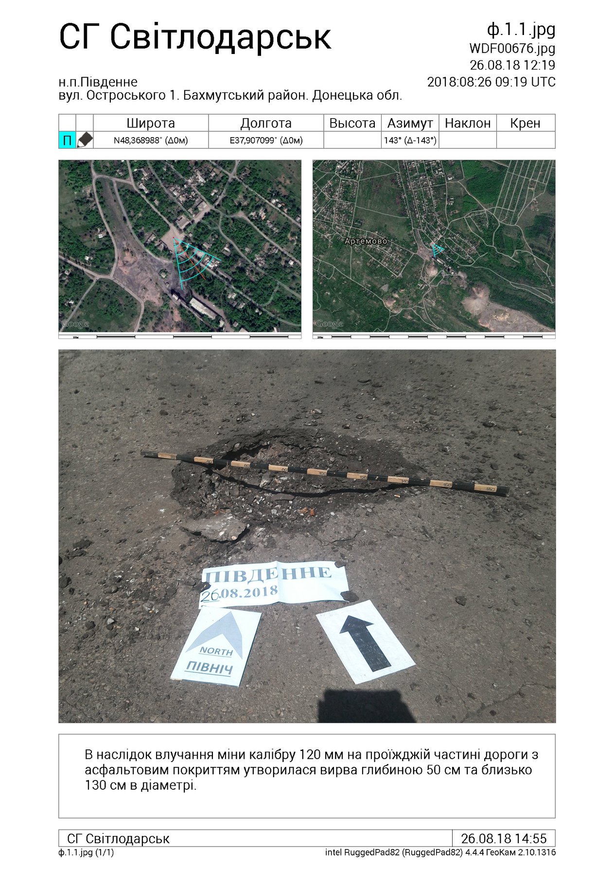 По данным СЦКК, огонь велся в направлении Горловка - Пивденное. Причем, расстояние от места попадания мины до ближайших позиций Вооруженных Сил Украины составляет около 1 км.