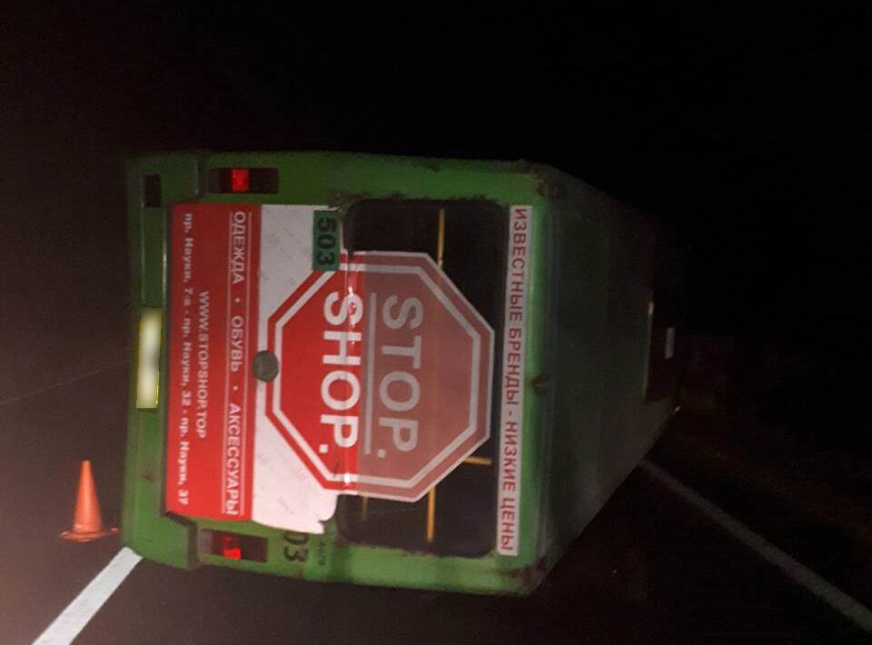 Сегодня около 21-30 на окружной дороге на участке в районе 17 кладбища в направлении улицы Леся Сердюка перевернулась маршрутка - автобус Эталон.