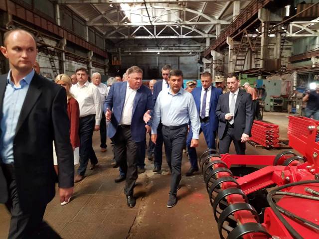 Премьер-министр Украины Владимир Гройсман осматривает продукцию Лозовского кузнечно-механического завода в Харьковской области.