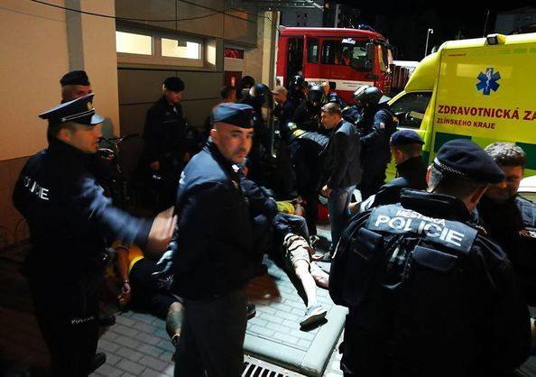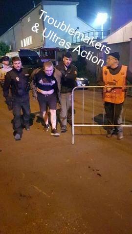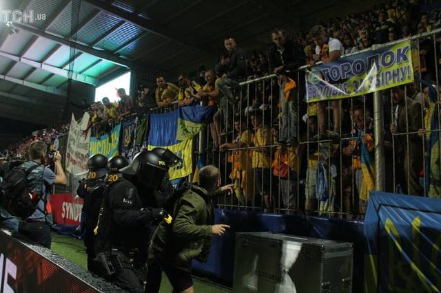 Главный тренер сборной Украины Андрей Шевченко подошел к гостевому сектору, чтобы поприветствовать фанатов и поблагодарить за поддержку. Харьковчанин, представитель Кharkiv City Patriots, вышел к главному тренеру сборной, после чего чешские полицейские задержали его.