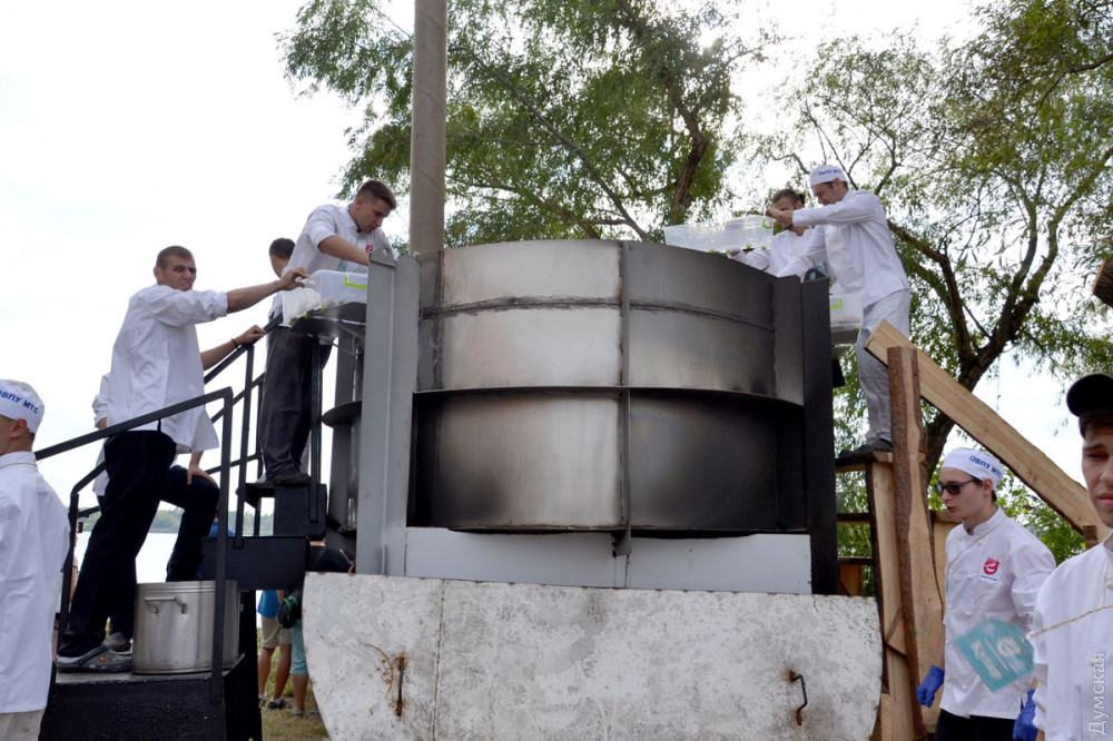 Казан изготовили работники Килийского судостроительно-судоремонтного завода. Ответственнейшая миссия приготовления ухи была доверена учащимся Одесского высшего профессионального училища морского туристического сервиса.