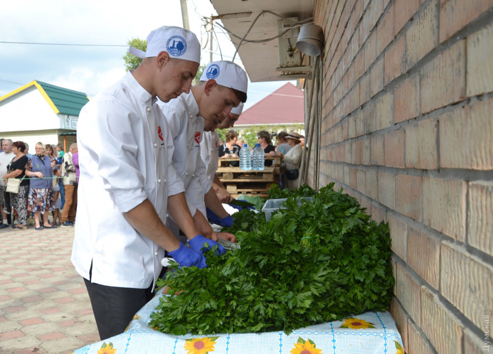 К тому времени поспело главное блюдо — уха по-липовански. Невероятного труда стоило приготовить рекордное количество юшки, на которую, по словам городского головы Вилково Николая Дзядзина, ушло 1670 кг рыбы 16 видов (карп, судак, толстолоб, сом, лещ, жерех, щука, кефаль, камбала, карась и другие), 430 кг моркови, 400 кг лука, 400 кг картофеля, 120 кг помидоров, 60 кг болгарского перца, 30 кг соли, 2,5 тонны воды.