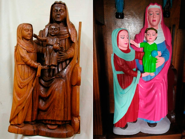 В поселении Раньядойро на севере Испании художница-любительница отреставрировала деревянные скульптуры XV века, принадлежащие местной часовне. Жительница поселения Мария Луиза Менендес раскрасила статуи Девы Марии, младенца Иисуса, святой Анны и святого Петра в яркие цвета, пишет artsy.net.