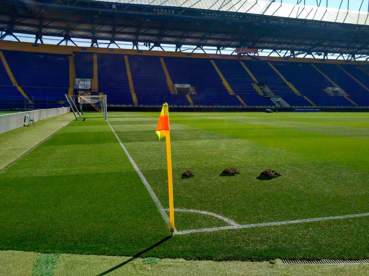 Перед матчем #ШахтерХоффенхайм на ОСК «Металлист» в Харькове появились кротовьи норы в районе углового флажка северной трибуны. pic.twitter.com/acX9PMyB5M