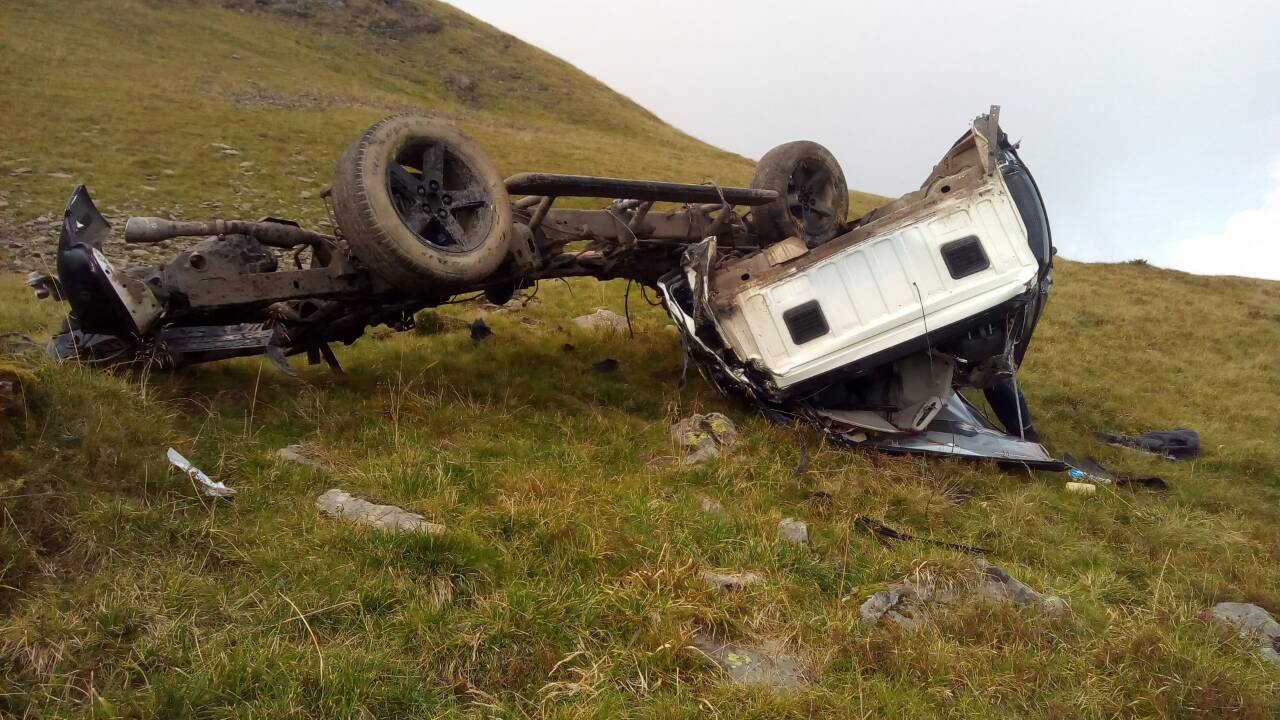 Сегодня утром возле горы Близница (Раховский район) один из туристов, проходил по известному маршруту "Вершина Свидовца" и увидел в ущелье разбит внедорожник.