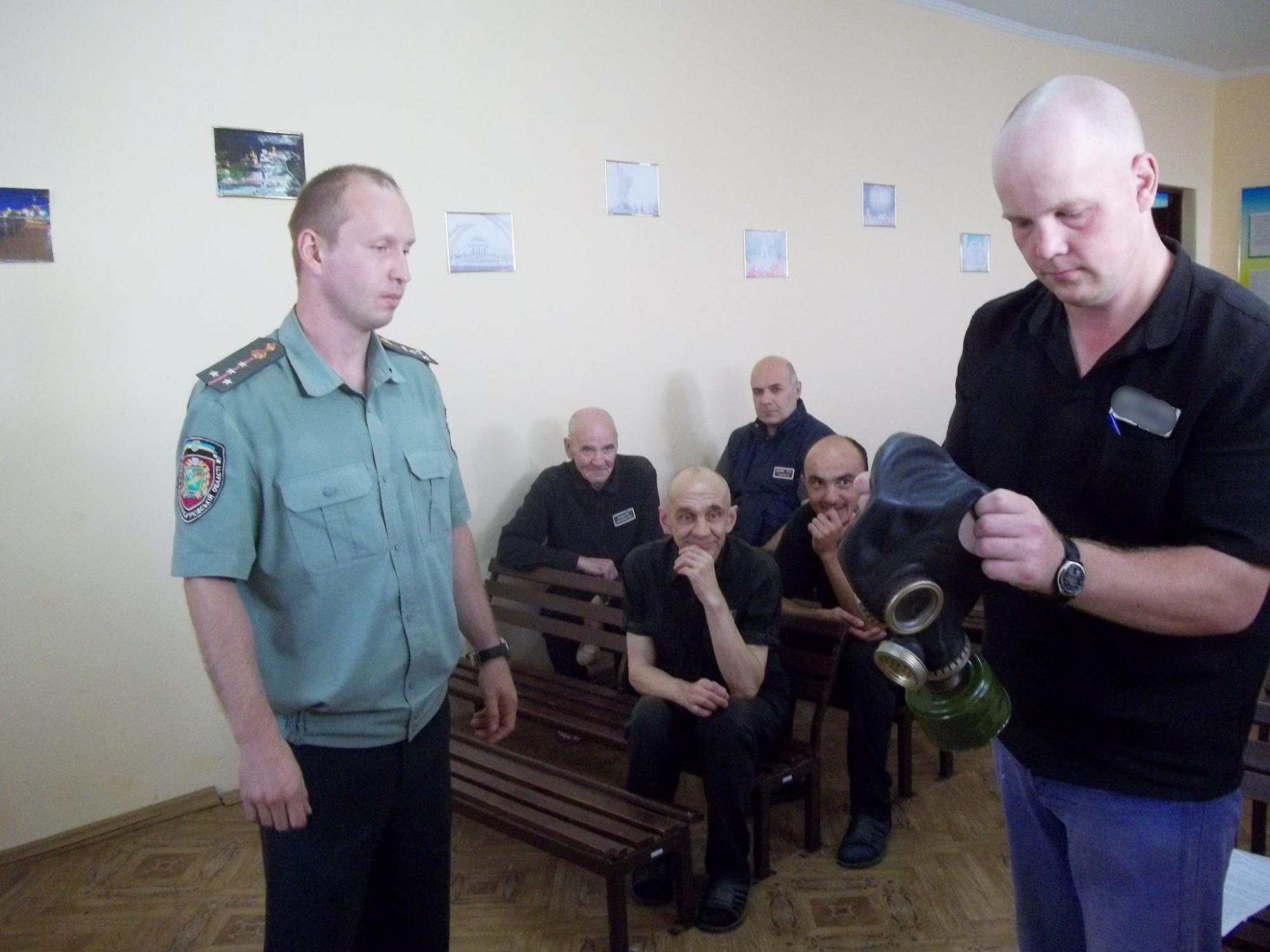 Засудженим було роз’яснено їх дії на випадок виникнення надзвичайних подій та показано укриття, у які необхідно евакуюватися. Також ознайомились з призначенням, загальною будовою та принципом роботи фільтруючих протигазів, навчались підбирати розмір та вдягати протигаз.