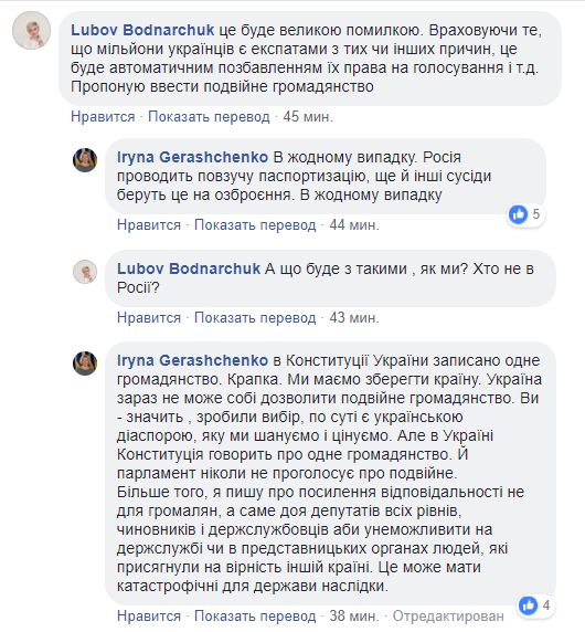 Первый заместитель председателя Верховной Рады Ирина Геращенко заявляет о намерениях провести в парламенте дебаты об усилении ответственности о скрытом двойном гражданстве в связи с появившейся информацией о якобы выдаче венгерских паспортов гражданам Украины в консульстве Венгрии в г.Берегово Закарпатской области.