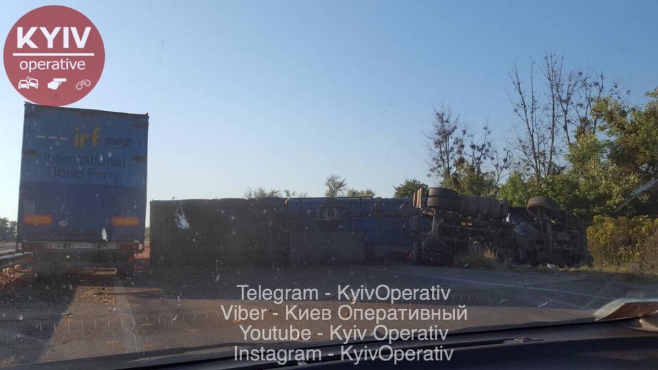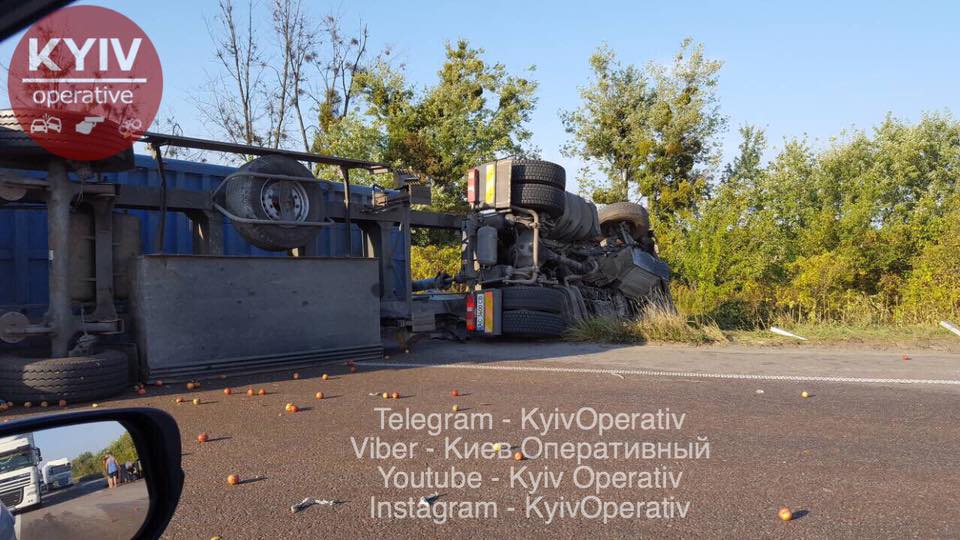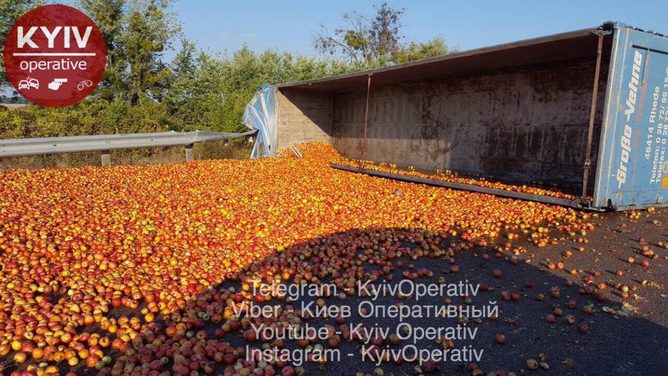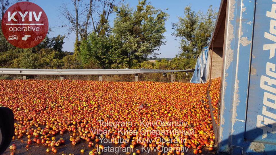 Накануне на 120-м километре трассы «Киев-Харьков» образовался серьезный затор. Его причиной стала фура, которая «разгрузила» яблоки прямо на шоссе.