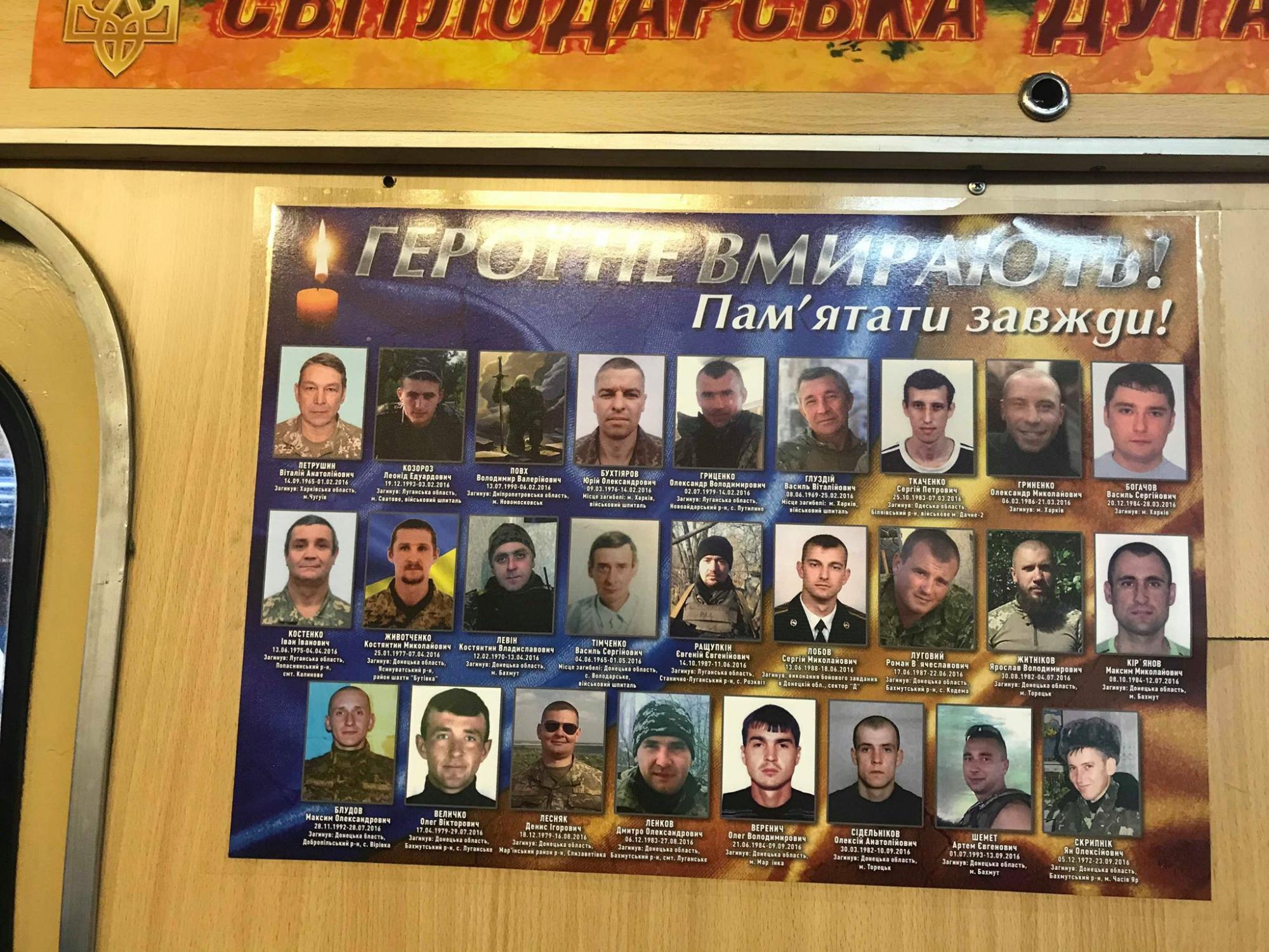 В метрополитене появился вагон с фотографиями украинских военных, которые погибли в ходе военных действий на Донбассе.