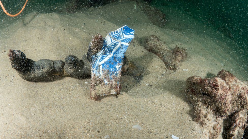 На дне моря обнаружен китайский фарфор конца XVI - начала XVII веков, бронзовые пушки, а также ракушки каури, которые использовались в те времена в районе Индийского океана в виде валюты.