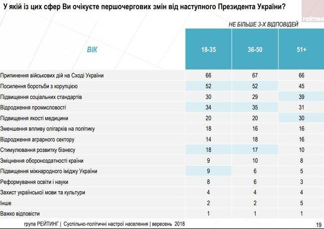 А вот рейтинг главных тем для украинцев, которые, должны стать настоящей повесткой дня для кандидатов (выбирать можно было сразу три основных темы).