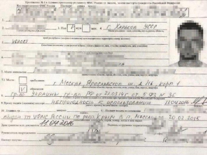 При содействии ФСБ без имеющихся на то оснований злоумышленник в феврале 2015 пользовался на временно аннексированной территории АР Крым внутренним паспортом гражданина РФ. В апреле 2016 этот паспорт был изменен Управлением по вопросам миграции ГУ МВД России по г. Москва на другой, также Мусееву был выдан загранпаспорт гражданина РФ и индивидуальный налоговый номер.