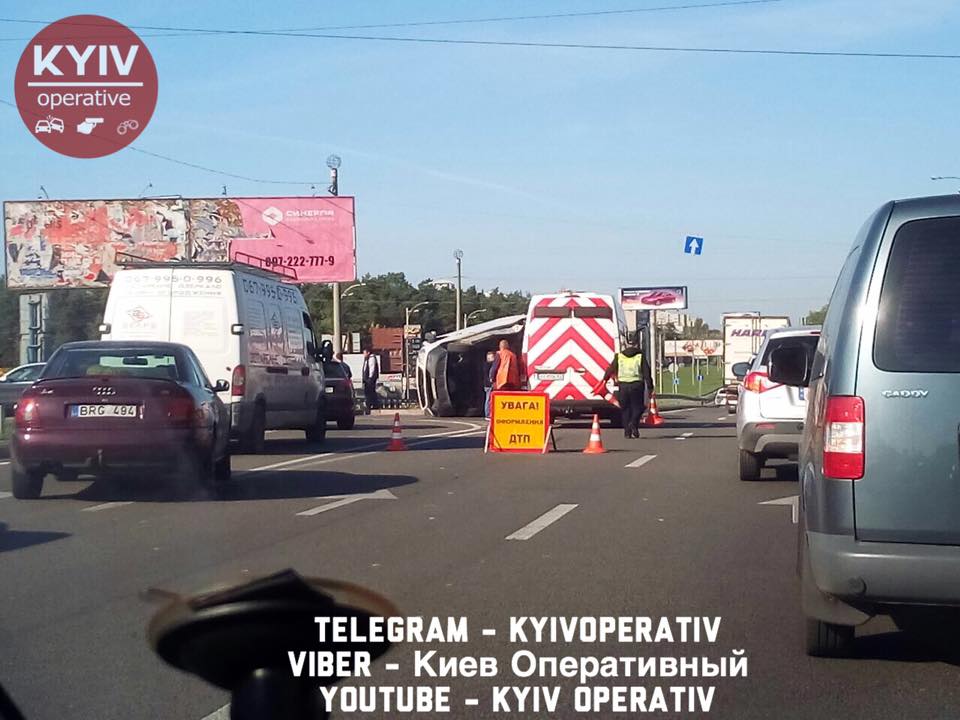Серьезное ДТП в Киеве - перевернулся микроавтобус 6 октября 2018 16:06 Серьезная ДТП с опрокидыванием произошло на Большой Кольцевой дороге в Киеве, сразу за «обойным рынком» (в сторону проспекта Победы). Об этьом сообщает "Киев Оперативный". "Информация о пострадавших устанавливается", - отмечено в сообщении.