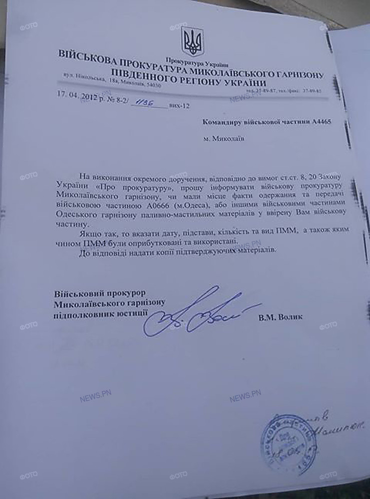 Согласно опубликованным документам, речь идет о поставках топлива в военные части Одесской области.