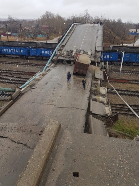 Два пролета виадука упали на железнодорожное полотно. По предварительной информации, инцидент произошел, когда по мосту проезжал грузовой автомобиль, водитель госпитализирован.