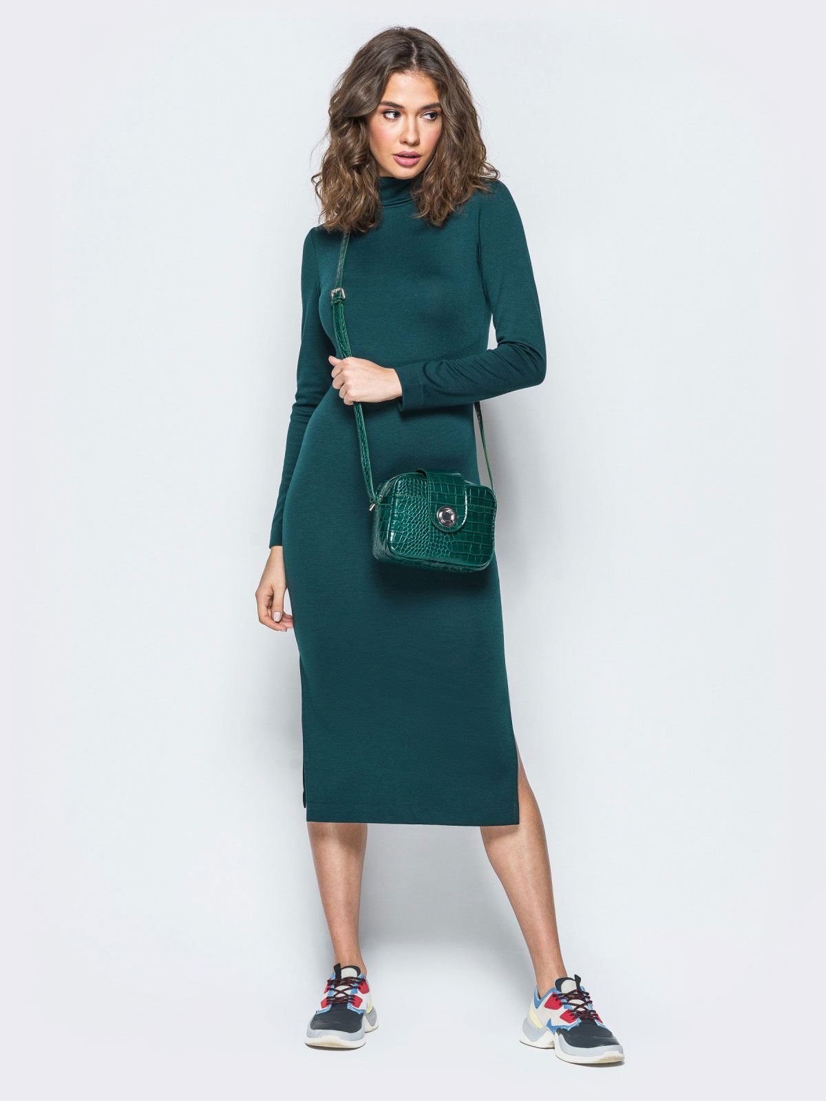 Элегантное платье-гольф из джерси представлено в двух цветовых решениях – черном и зеленом. В Dressa покупатель найдет размеры от 44 до 48-го. Такая модель подчеркнет достоинства фигуры ее обладательнице. Впрочем, смелость украинок различных форм и достоинств еще никто не отменял.