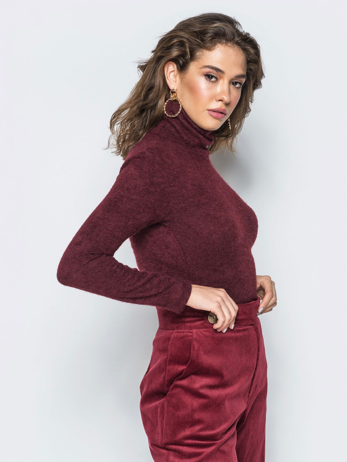 В ассортименте три цвета – бордовый, бежевый и горчичный. Воротник –стойка, сам гольф без застежек. Отметим, что доставка всех товаров и возврат, купленных в Dressa, производится бесплатно.