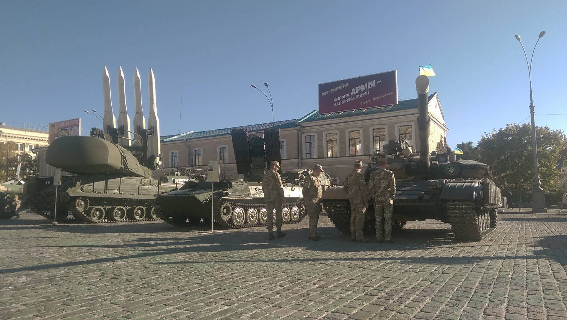 Праздник на площади Свободы начнется 14 октября в 8:50. Выставка техники и вооружения будет работать с 13 до 15 октября. Задействованы почти все виды военной техники (по одной единице каждой) воинских частей, расположенных на территории Харьковского гарнизона.