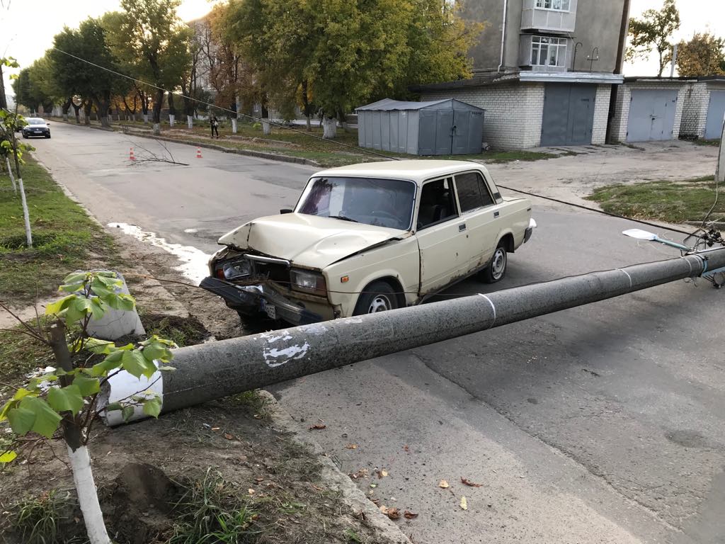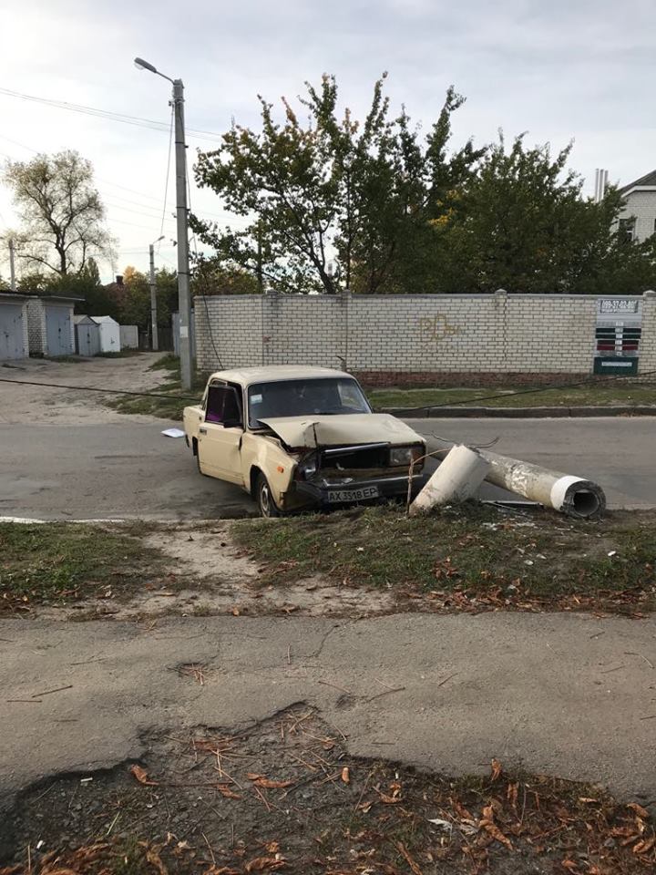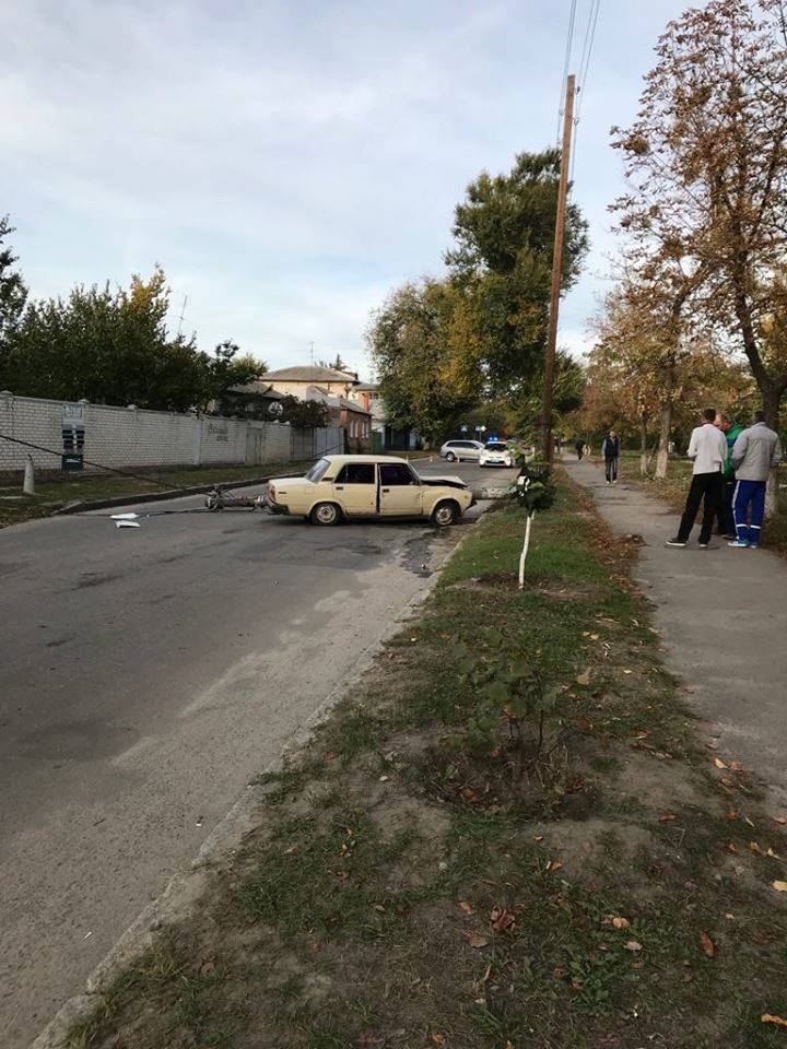 Сегодня вечером на ул. Григоровское шоссе "ВАЗ-2105" врезался в опору линии электропередач, в последствии чего она рухнул на дорогу.