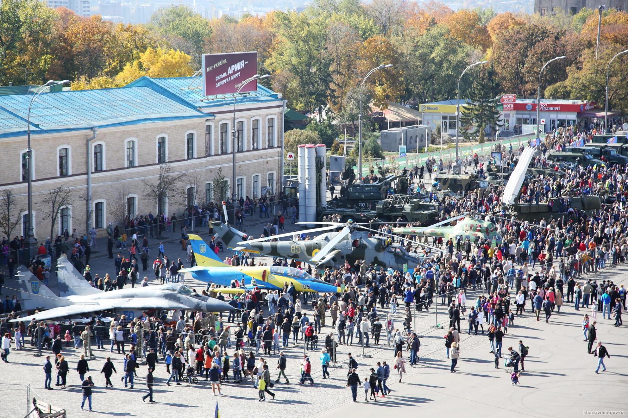 Выставка техники и вооружения будет работать на площади Свободы до 15 октября. К ней привлечено почти все виды военной техники воинских частей, расположенных на территории Харьковского гарнизона.
