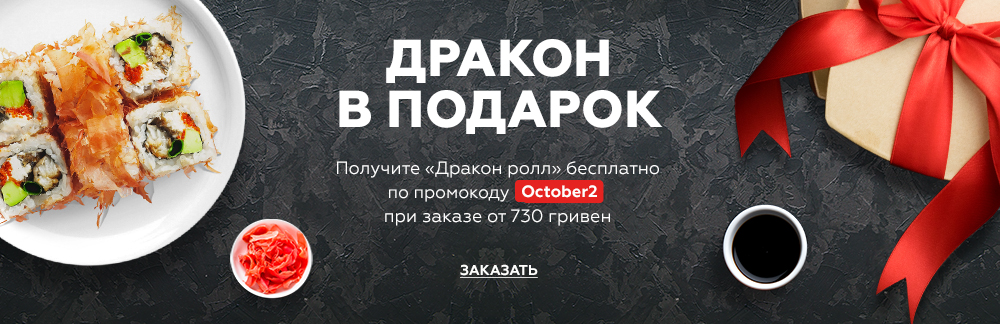 Это всеукраинская сеть ресторанов, которая вряд ли нуждается в дополнительной рекламе. Здесь лояльные условия доставки, а блюда всегда привозят горячими. Ресторан угощает гостей вкуснейшей японской кухней, а используемые в приготовлении продукты проходят несколько уровней проверки. Цены в ресторане можно отнести к доступным, а если вы проголодались, оперативная служба доставки привезёт горячую еду прямо к вам домой. В меню представлены также достаточно экзотические блюда.