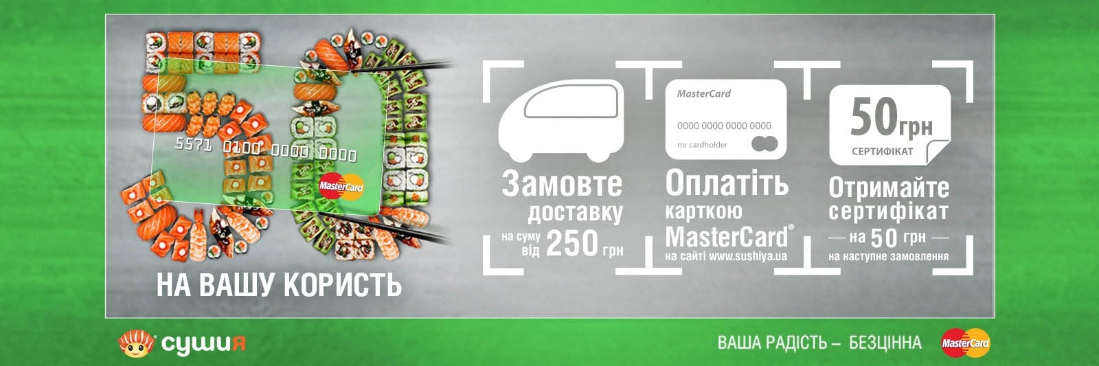 Доставка: заказы принимаются с 10 до 22 часов, еду привозят в течение всего 60 минут, доставка бесплатна – вы оплачиваете только заказ. Минимальная сумма заказа на доставку составляет 250 гривен.