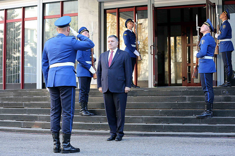 «Сьогодні маю честь від імені України вручити вам державні нагороди. Вам, захисникам Вітчизни, які гідно боронять державу. Нам довелося служити в той час, коли ворог окупував частину України, коли на кордонах держави йде війна, коли зсередини держави нас намагаються дестабілізувати чи "п’ятою колоною", чи кримінальними випробуваннями. І на заваді цього всього стоїте ви – захисники України. Пишаюсь вашою працею!», - сказав Арсен Аваков.
