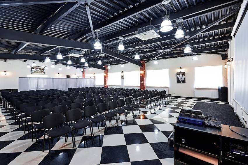 Возле станции метро Вокзальная есть еще одна наша локация, которая заслуживает особого внимания. Ее площадь двести метров квадратных. Данный зал способен комфортно разместить около двух сотен человек. Современная и презентабельная по европейским стандартам локация отвечает всем требованиям качественного конференц-сервиса. Для разделения окружающего пространства предусмотренные компактные мобильные перегородки.