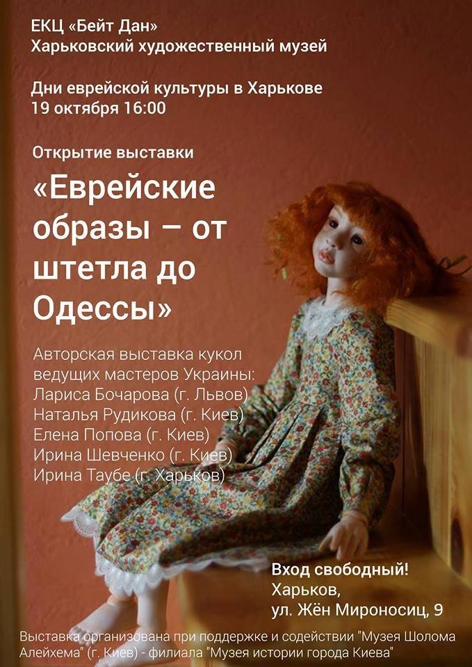 Выставка авторских кукол «Еврейские образы - от штетла до Одессы» откроется 19 октября в Харьковском художественном музее (ул. Жен-Мироносиц, 9).