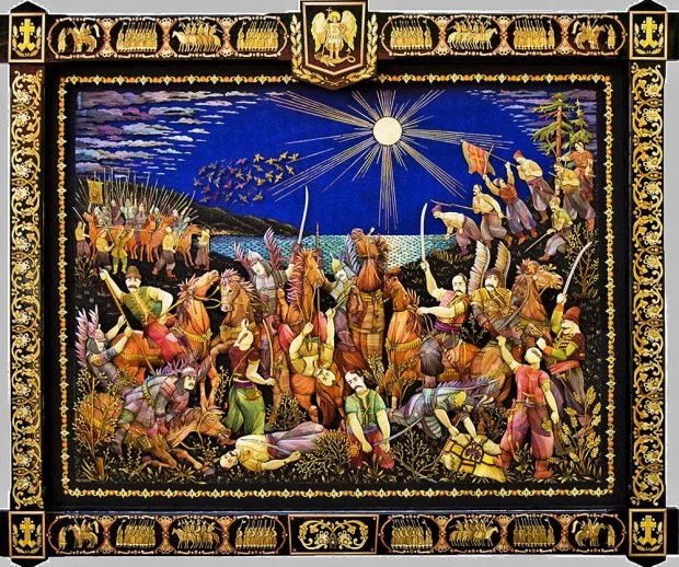 Все картины мастера объемные - имеют несколько планов. Сейчас художник работает над композицией, которая символизирует современное время - военный конфликт между Украиной и Россией, передает 24 канал.