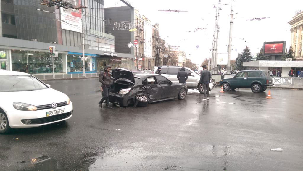 Автомобили BMW и Toyota столкнулись в центре Харькова, на пересечении улицы Сумской и проспекта Независимости.