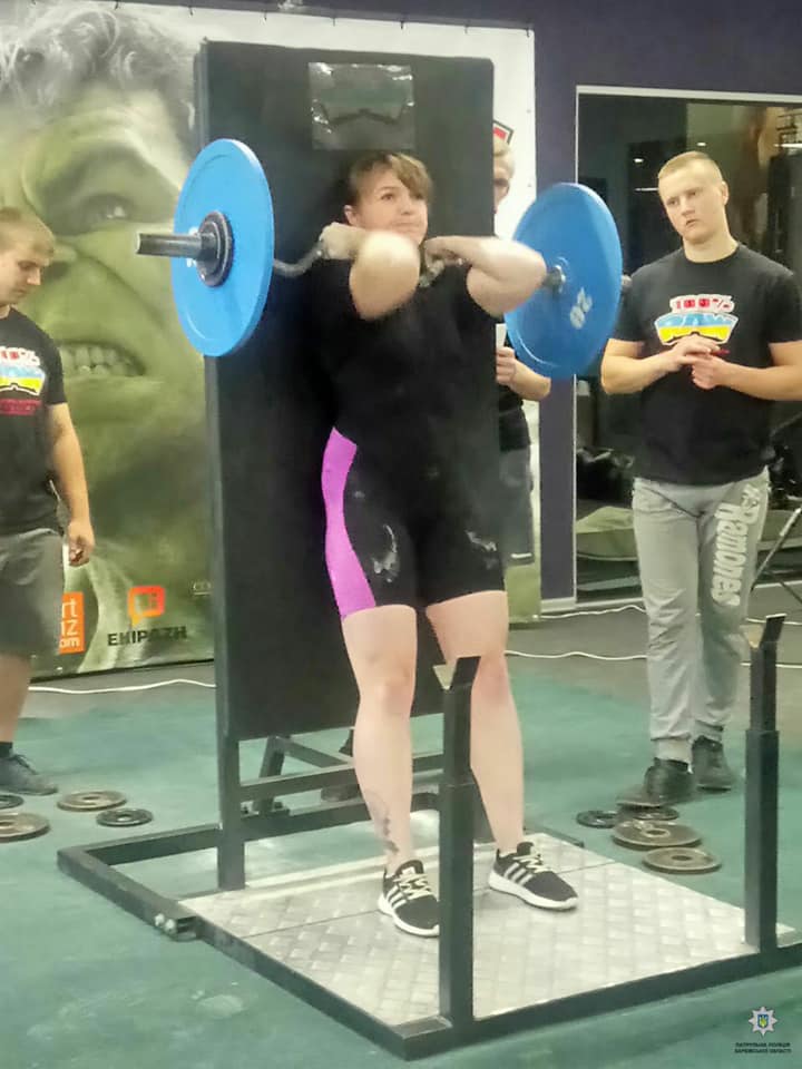 Цього разу патрульна поліцeйська Юлія Гeрус встановила новий рекорд України з пауерліфтингу в дисципліні “Підіймання штанги на біцепс у ваговій категорії 70 кг".