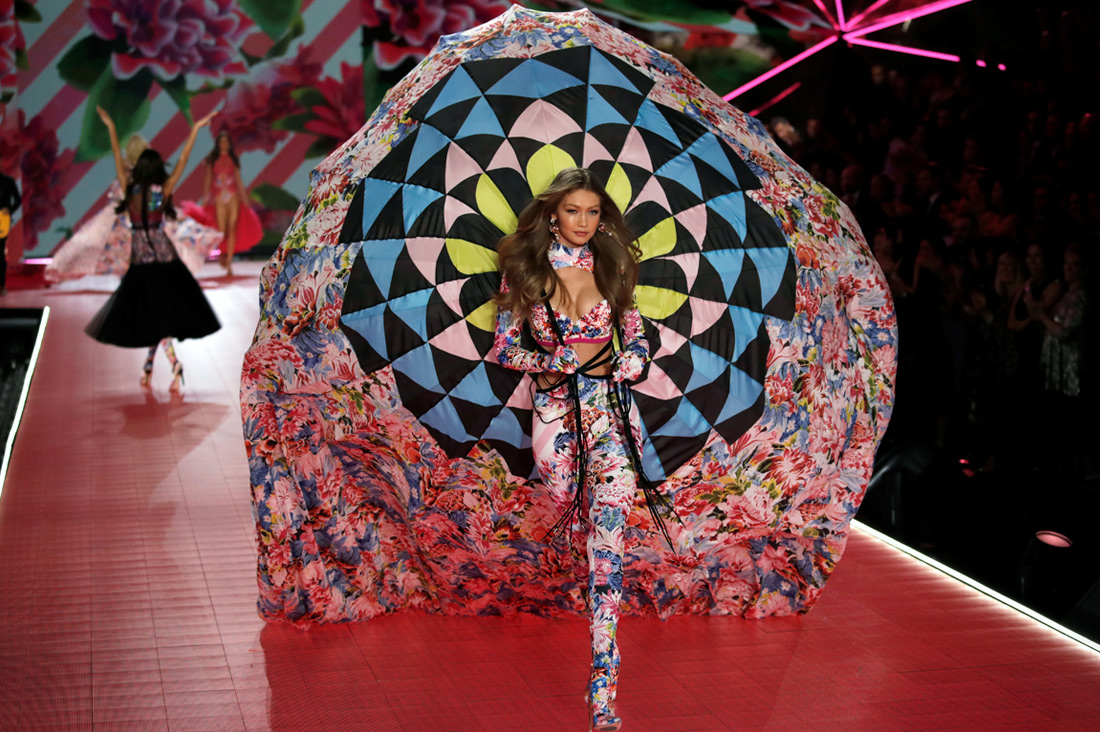 На подиум в соблазнительном белье из новой коллекции бренда вышли супермодели Эльза Хоск, Адриана Лима, Кэндис Свейнпол, Кендалл Дженнер, Стелла Максвелл, Жасмин Тукс, а также сестры Джиджи и Белла Хадид.